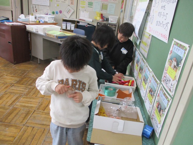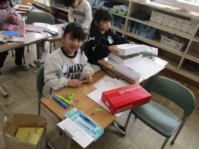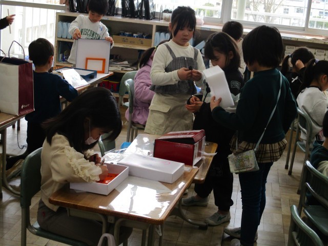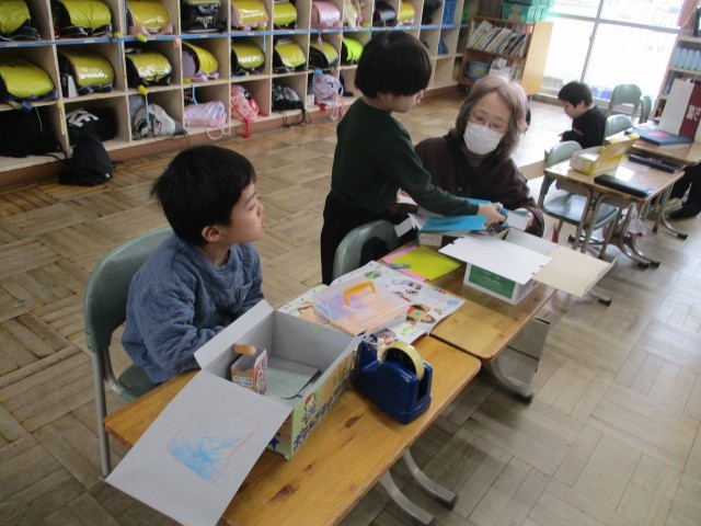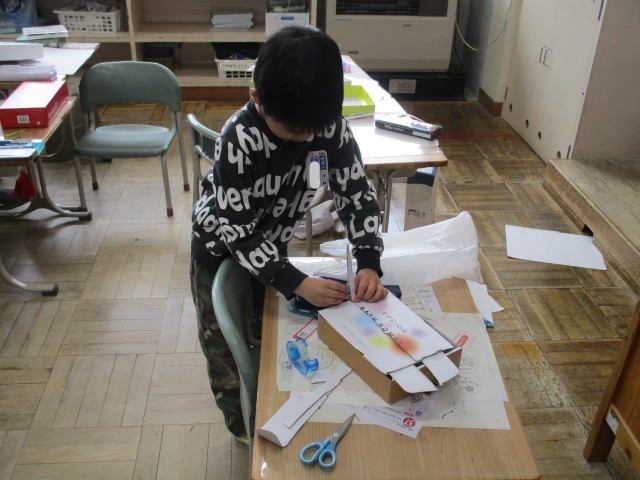 1年生は図工で自分の大切なものを入れる箱を作っていました。