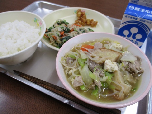 今日は調理員さん二人と栄養士さんがお休み。