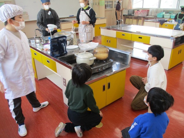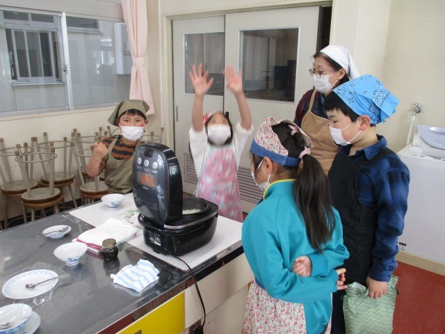 ご飯を炊く様子を見ながら、どきどきわくわく。