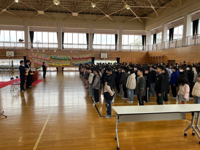 今日は今までお世話になった先生方とのお別れの会「離任式」を行いました。