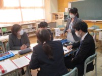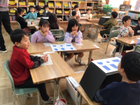 4年生は寝転がって何をしているかというと、部屋を暗くして、プラネタリウムを使い星座の観察です。