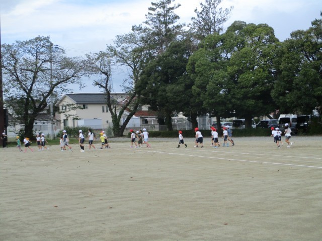 10月31日(金)に行われる持久走記録会に向けて、業間の時間に業間運動(5分間走)がスタートしました。前半が上学年、後半が下学年の2部制です。音楽に合わせて5分間、懸命に走っている姿が見られました。持久走記録会まで、目標をもって進んで取り組んでほしいと思います。