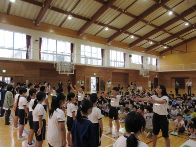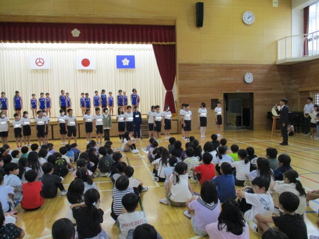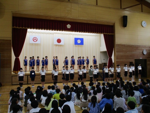 10月1日(水)に、10月8日(水)に行われる陸上競技交歓会の励ます会が行われました。選手登壇並びに選手紹介の後、校長先生のお話がありました。その後、5年生の応援団によるエールが行われ、全校生で6年生の活躍を祈っていました。大会当日は、自己ベストを目指して頑張ってほしいと思います。
