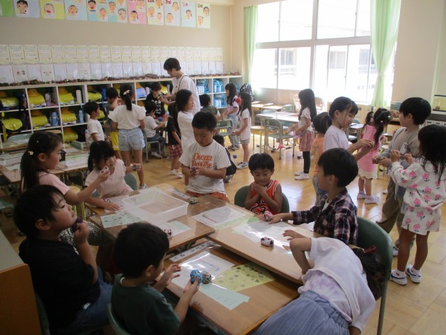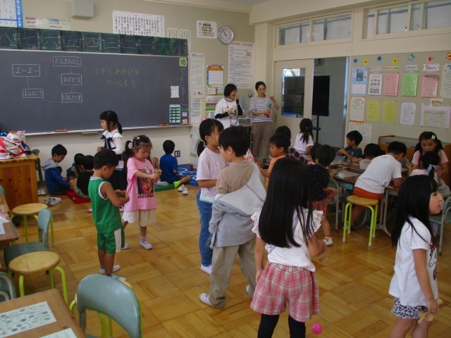 10月2日(木)に、永盛保育所の子供たちが保小連携の一環として小学校の見学に来校しました。1年生と様々なゲームや遊びを行い、交流を深めていました。