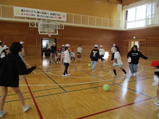 10月10日(金)の2校時目に1・6年生がなかよし集会を行いました。じゃんけん陣取りや転がしドッジボールを一緒に行い、楽しい時間を過ごしました。