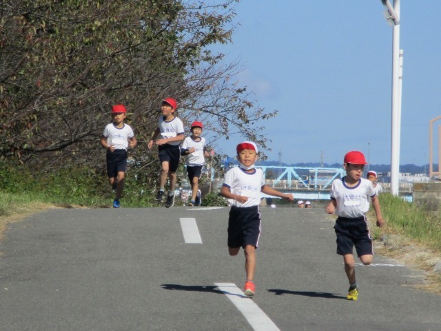 10月23日(木)に、1,2年生が持久走記録会へ向けてのロード練習を行いました。天候にも恵まれ、最後まで頑張って練習を行っていました。