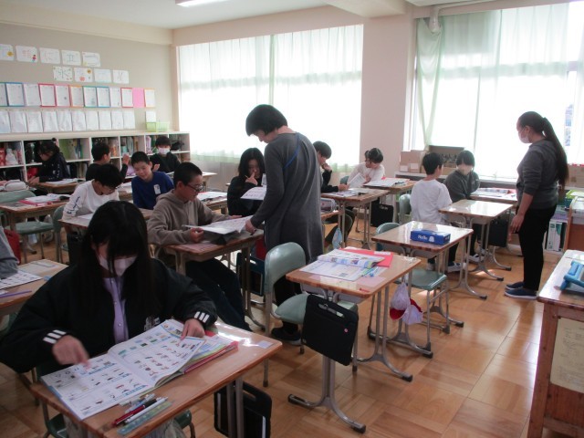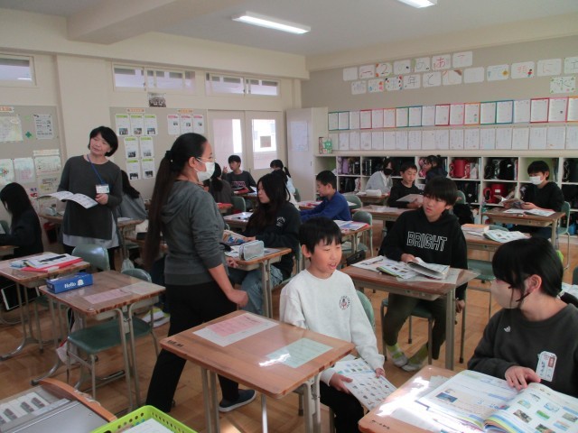 11月5日(水)に、AETのドナリン先生が来校しての英語の学習を行いました。今回は、5年生と6年生が学習を行いました。6年生は、動物が住んでいる場所についての言い方の練習を行いました。