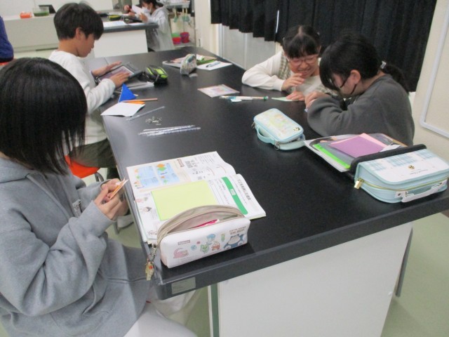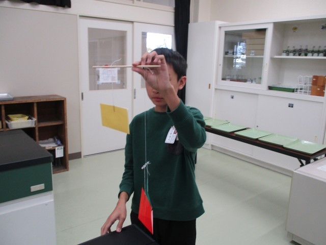 11月7日(金)に、6年生が理科の学習でモビールづくりを行いました。モビールづくりを通して、てこのきまりや有用性に気づくことが目的です。折り紙を折って、上手にバランスを取りながら制作に取り組んでいました。