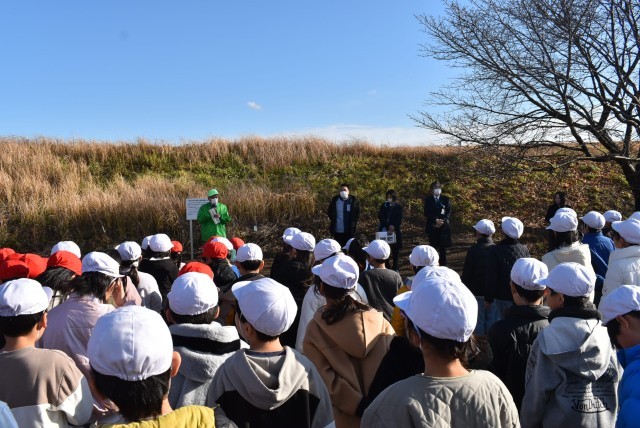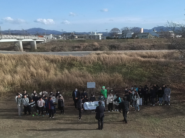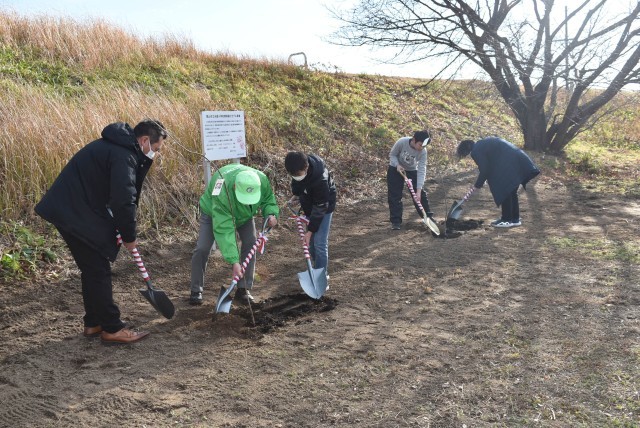 12月17日(水)に、(株)ローソン郡山日出山店や福島県森林・林業・緑化協会の方々をお招きして、「緑の募金」事業(郡山市立永盛小学校環境緑化モデル事業)完成式典を行いました。それに合わせ、福島県独自の桜「ハルカ」の植樹も行いました。何年後かにはきっと立派な桜の花を咲かせてくれることでしょう。