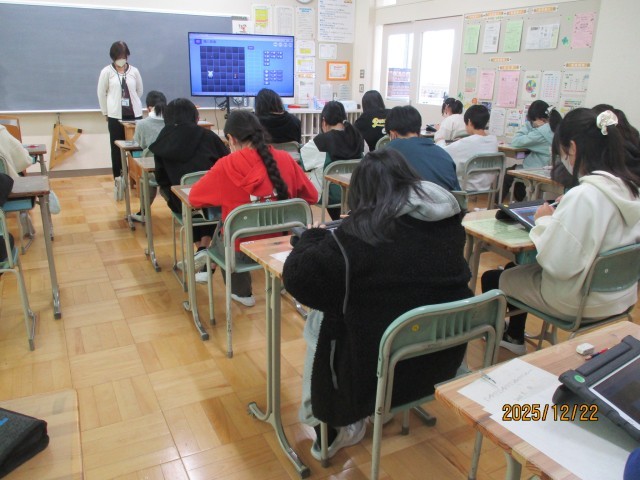 12月22日(月)に、講師の先生をお招きし6年生がプログラミングの学習を行いました。今回は、ロボットではなく、画面上のネズミをチェックポイント通りながら移動させる課題のプログラムにチャレンジしました。