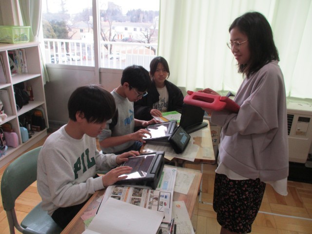 6年生は,理科の最後の単元の学習がスタートしました。最後の単元は,「地球に生きる」です。今まで学習してきた「空気」「水」「生き物」「大地」の自然環境と人がどのようにかかわり,恵みを得ているのか。また,人の暮らしが環境にどのような影響を及ぼしているのかを調べます。「空気」「水」「生き物」「大地」の中から自分のテーマを設定し,本やインターネットで調べ,最後に発表会を行います。同じテーマの仲間と熱心に調べたり,意見や考えを交流させています。