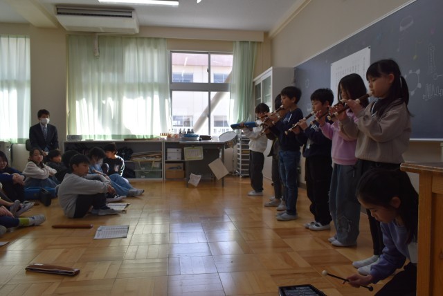 2月20日(金)に今年度最後の授業参観が行われました。3年生は,音楽科の「思いを音楽で表そう」で,グループごとに練習を重ねてきた合奏の発表会を行いました。今年度から取り組んでいるリコーダーや鍵盤ハーモニカなど様々な楽器を使って美しいハーモニーを響かせていました・。