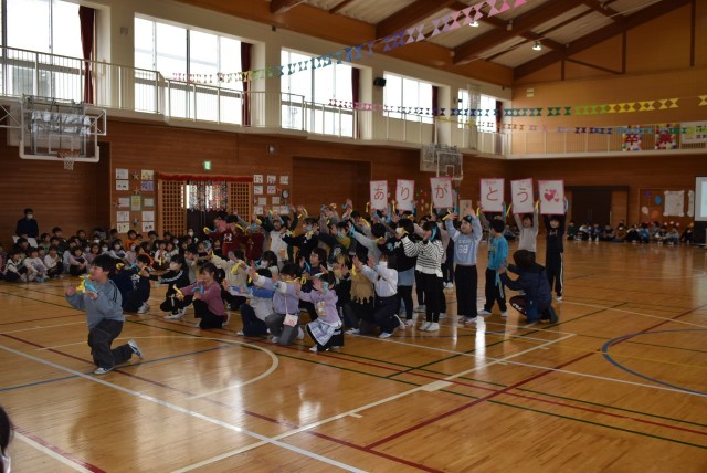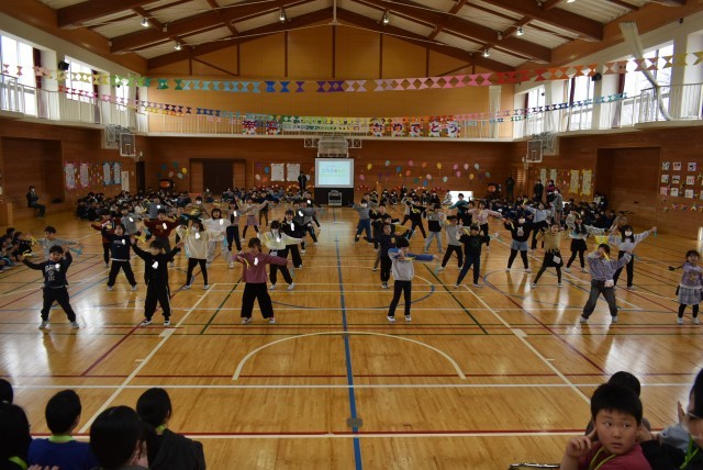 1年生に続いて2年生の発表です。2年生の発表は,「倍々ありがとう!」でした。ダンスと呼びかけ,メッセージボードで今までの感謝の気持ちを6年生に伝えていました。