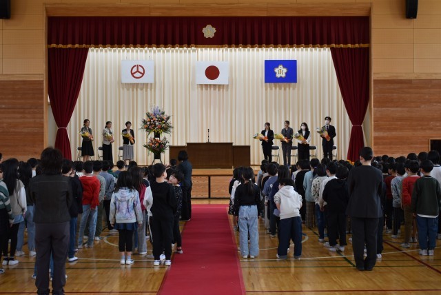 3月27日(金)に,離任式が行われました。令和7年度末人事異動に伴い,8名の先生方が転退職されました。8名の先生方の新任地並びに新生活でのご活躍をお祈り申し上げます。8名の先生方がこの永盛小学校にまいた種を残された我々がしっかりとした実に育てるように頑張っていきたいと思います。