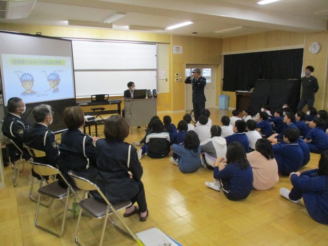4月10日(金)に,交通安全教室が行われました。今回は,3年生から6年生までが対象です。あいにくの天気で,外での活動は行いませんでしたが,ビデオを見て自転車のルールやヘルメットの重要性などについて学習しました。この春から道路交通法が改正され,自転車も青切符を切られるようになりました。小学生はまだ対象ではありませんが,正しい交通ルールを知り,正しい自転車の乗り方を身に付けることは自分の身を守るためにも大切です。ご家庭でも交通ルールを守ることをご指導いただきたいと思います。