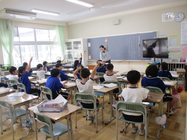 4月14日(火)の学校の様子です。1年生は,職員室への入り方の練習を行っていました。6年生は理科で物の燃え方の学習の実験を行っていました。全校生,熱心に学習に取り組んでいました。