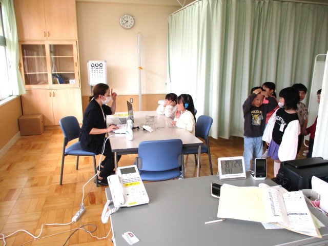 4月15日(水)に,1年生が視力検査と聴力検査を行いました。自分の番までしっかりと待つことができました。