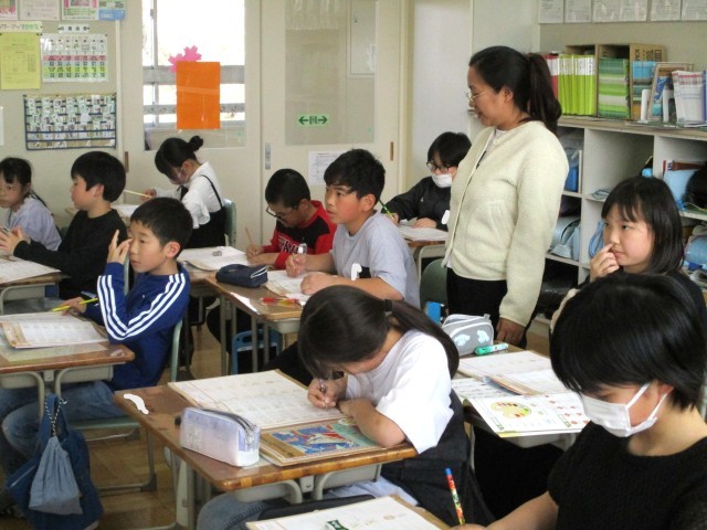 4月17日(金)に,AETのドナリン先生が来校しての英語の学習が行われました。今回は,5年生が学習しました。基本に戻って,アルファベットの大文字を正しく書く練習を行いました。