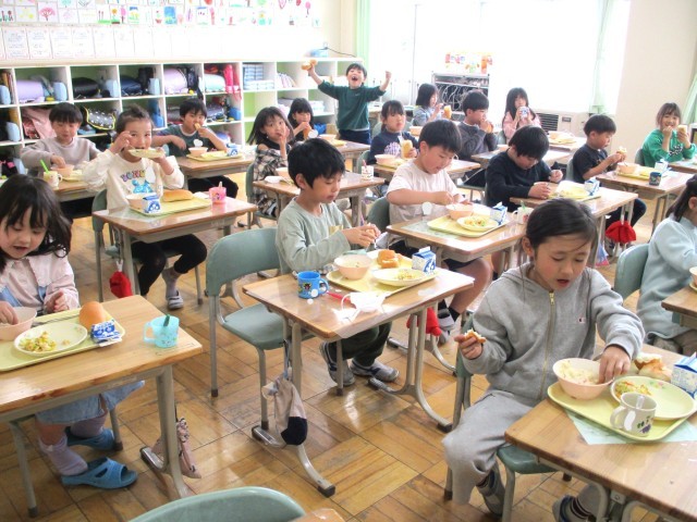 4月23日(木)の学校の様子です。今回は,給食の様子をお知らせします。1年生は,早めに食べ始めているので,食べ終わってしまった児童が多かったです。