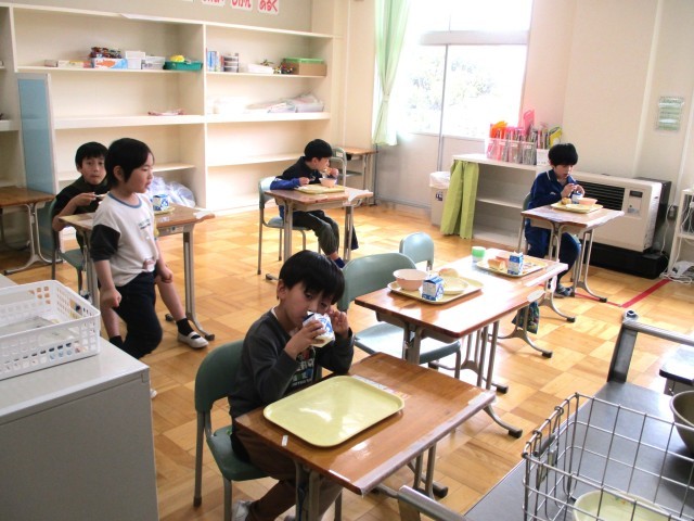 4月23日(木)の学校の様子です。今回は,給食の様子をお知らせします。1年生は,早めに食べ始めているので,食べ終わってしまった児童が多かったです。