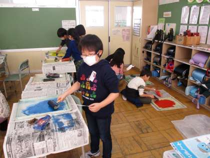 ひのき、けやき学級勉強中、3年生は版画印刷中です。