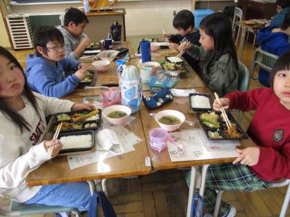 本日のデリバリー給食です。3・4年生の給食時の様子です。