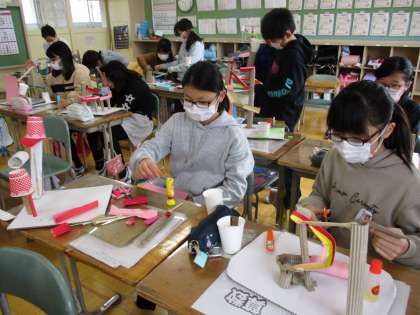 ひのき学級の様子です。工夫して、個別にも指導中です。5年生図工で、ビー玉の通り道を考えながら工夫しています。