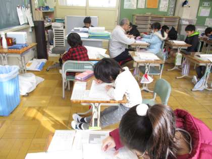 けやき学級の様子です。6年生理科の様子です。4年生は外に出て理科で冬の観察をしています。