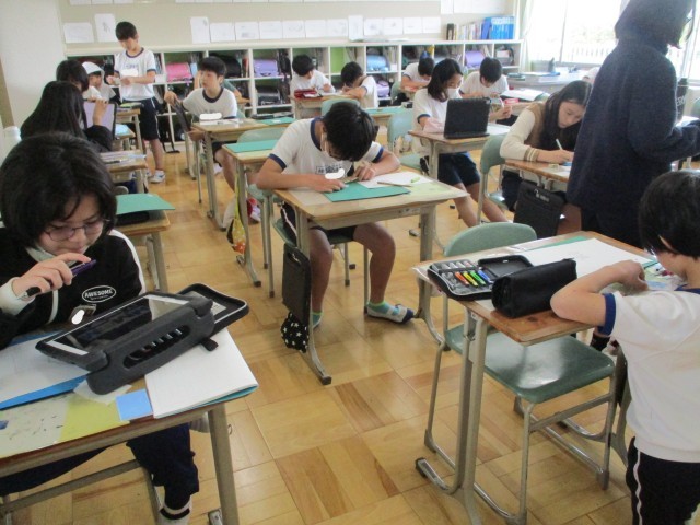 4月24日(金)の学校の様子です。1年生は,給食の準備の様子です。英語科や音楽科...