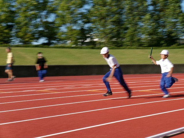 5,6年生は2回目の競技場練習に来ています。