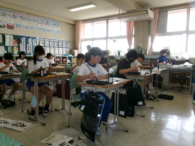 6年生 書写の時間です。課題の「友情」を丁寧に書いています。