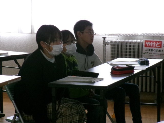 震災当時の様子は、新聞記事で振り返りました。お二人の読み聞かせに、子どもたちは真剣に聞き入っていました。