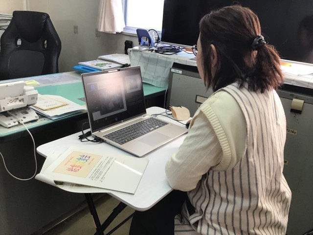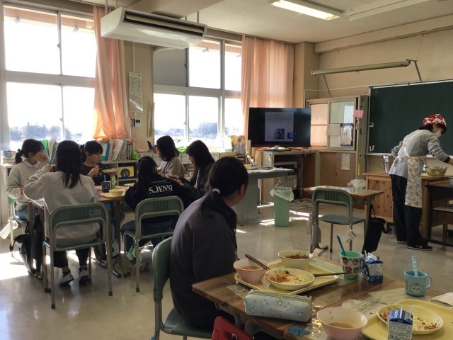 給食の時間にはzoomで、給食の先生から放送を行いました。