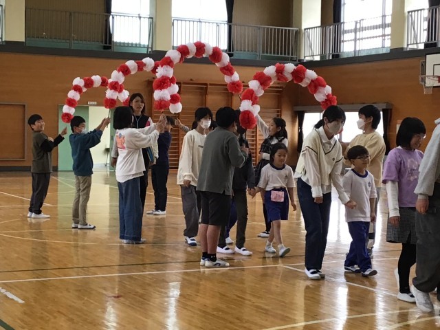 全校生でじゃんけん列車や、だるまさんの一日などの遊びを全校生で行い、楽しい時間を過ごしました。