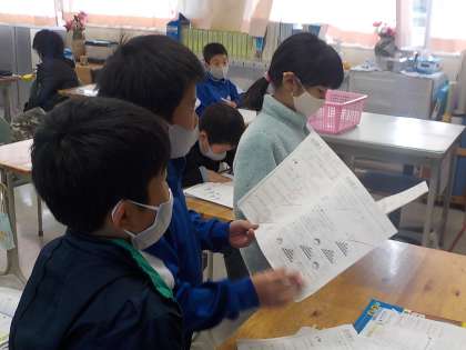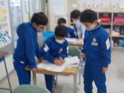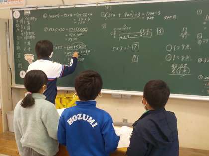 4年生は、プリントで単元のまとめをしています。学んだことを定着させるには、自力で問題を解き、まちがいとその原因を知ることが大切ですね。