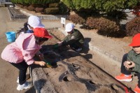 今日の業間を使って、緑の活動として球根を植えました。用務員さんが学校の花壇に植...