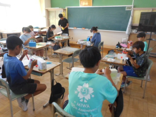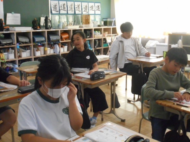 今日の三和っ子、最初は4年生です。なかなかタイミングが合わず、写真が撮れないでいた4年生が今日は教室にいました。理科の学習中です。映像で見る季節と三和の季節はどう違うのでしょうか。同じ部分もあるかもしれませんね。これからの学習がどう進んでいくのか楽しみです。続いて、6年生です。図画工作の学習中です。先日お伝えした工作の続きをやっていました。おもしろいアイディア豊富な6年生です。最後には、どんな動きをする作品に仕上がるのでしょうか。乞うご期待。最後は、5年生です。教頭先生と外国語の学習中です。音声を聞いて、アルファベットを書いていくのですが、音声が次々と流れていくので、もう大変。それでも、あきらめずに進んでいく5年生の姿にたくましさを感じました。