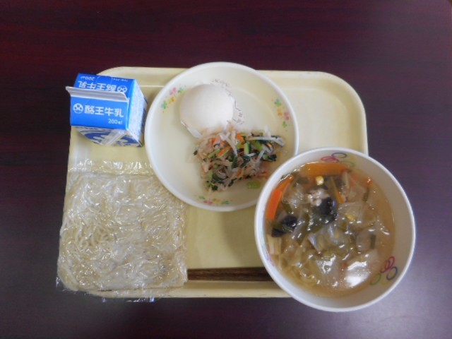 昨日の給食は、塩タンメン、ミニ肉まん、切干大根のキムチ和え、牛乳 でした。