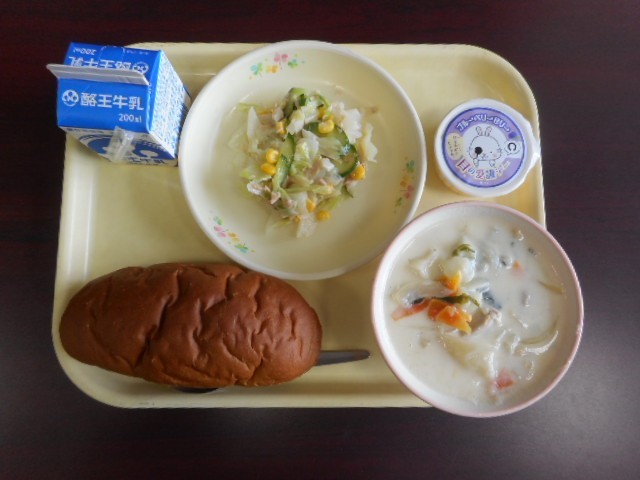 今日の給食は、「1日早い目の愛護デー献立」で、黒砂糖パン、あさり入りホワイトシチュー、ツナサラダ、ブルーベリーゼリー、牛乳でした。10と10を横にすると眉と目のように見えるので、10月10日は目の愛護デーとなりました。あさりはビタミンB12と鉄分が豊富で目に良いと言われています。ブルーベリーは、「アントシアニン」が目に良いと聞いたことがあります。ICT機器を日常的に使うのが当たり前になった今、かなり目を酷使していることはわかっていますが、使わないわけにもいかず・・・。今日と明日は、少し目のいたわりながら過ごしてみようと思いました。