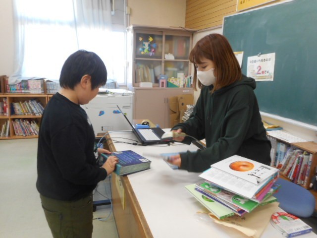 今日は学校司書の先生が、図書室にいてくださる日です。昼休み、2年生と3年生がやってきました。今日は、金曜日なので2冊借りることができます。借りたい本が見つからなくて、どこにあるか聞いている三和っ子もいました。図書室に先生がいてくださるのは、本当にありがたいです。現在、目標の70冊を達成している三和っ子は4名です。私も本を2冊借りてきました。読書の秋、本の世界に浸ります。