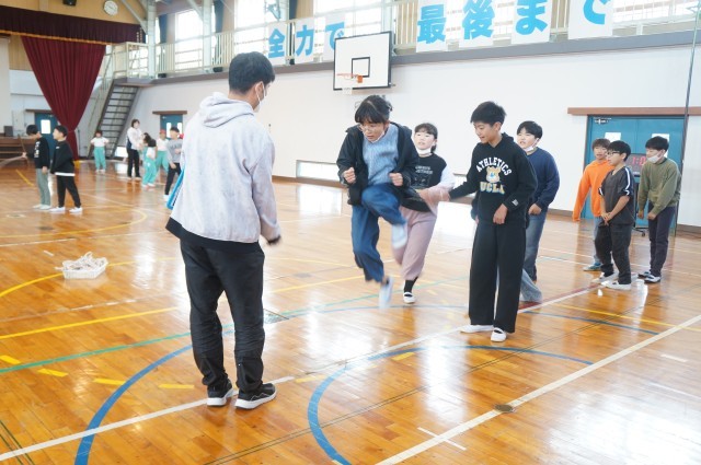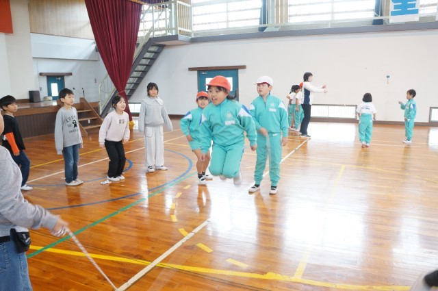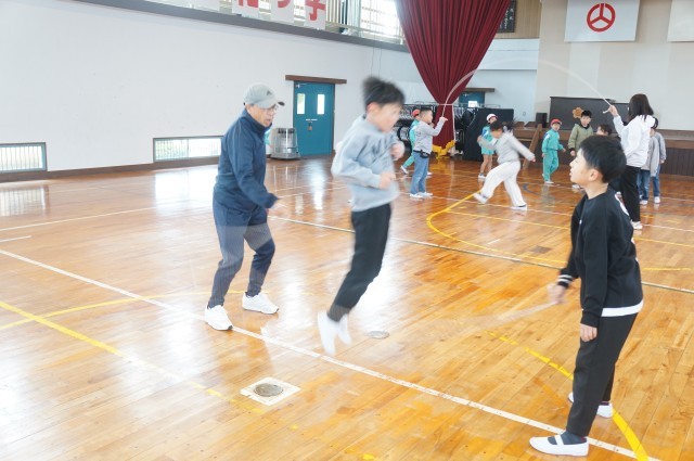 今日の業間の体力づくりは、長縄跳びでした。1年生にとっては、初の長縄跳びでしたが、コツをつかんで楽しく跳んでいました。