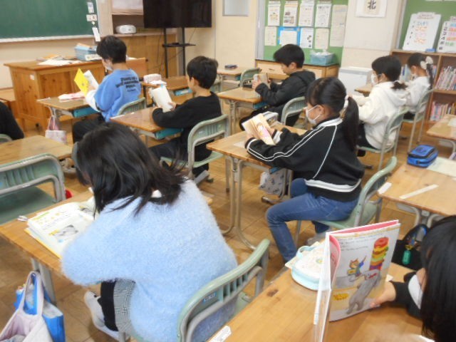 読書の様子を見ていると、選んでいる本が変わってきたのがわかります。文字が多い!!学校全体で、読書量と読書力をあげていきたいです。図書だよりにのっていた借りられていないかわいそうな本たちの現在が気になるところです。少しでも、救済されているといいのですが。担任の先生方、よろしくお願いいたします。私も本日、1冊救済できればと考えております。昼休みは、図書室に向かいます!
