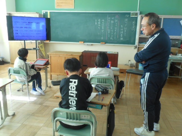 3連休明けの三和っ子たち。今日も、学校生活を頑張っていました。教材を使って、電流の働きを学んでいる5年生。卒業制作の図案を考えている6年生。詩を丁寧に視写している1年生。明日のだんごさしの準備が終わった2年生。縄跳びを練習している、3,4年生。ボールけりゲームをしている、1,2年生。国語の学習で、あるテーマについて調べ、発表する学習に取り組んでいる4年生。それぞれ、3学期の学習をがんばっています。