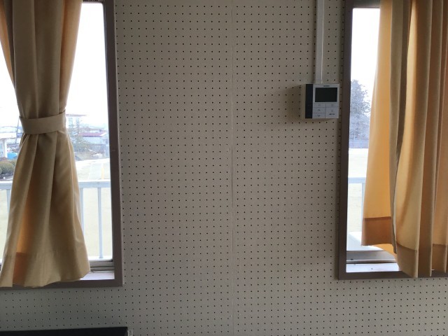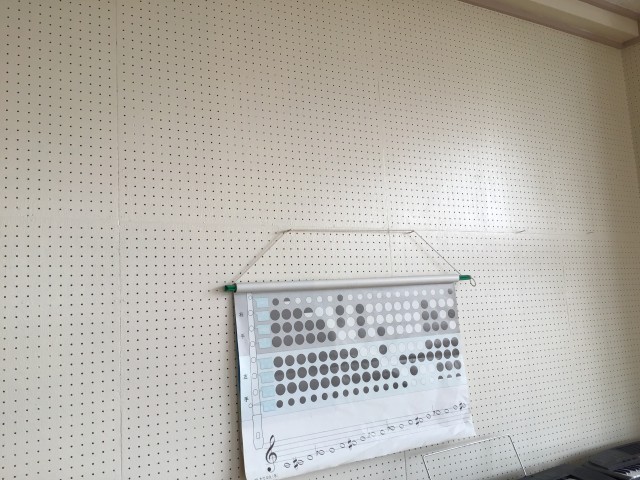 これまで、塗装がぽろぽろ剥がれ落ちていた音楽室の壁が、きれいになりました。業者さんがきれいに塗り直したり、接着したりしてくださいました。音楽室は、音楽の授業の他に、集会の場ともなるので、大変助かりました。