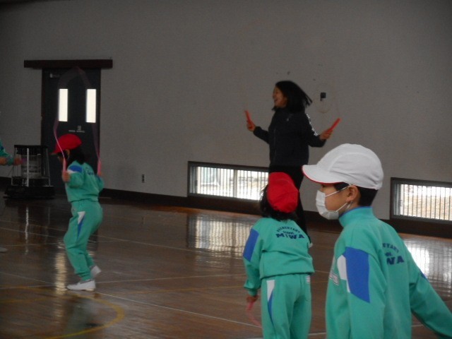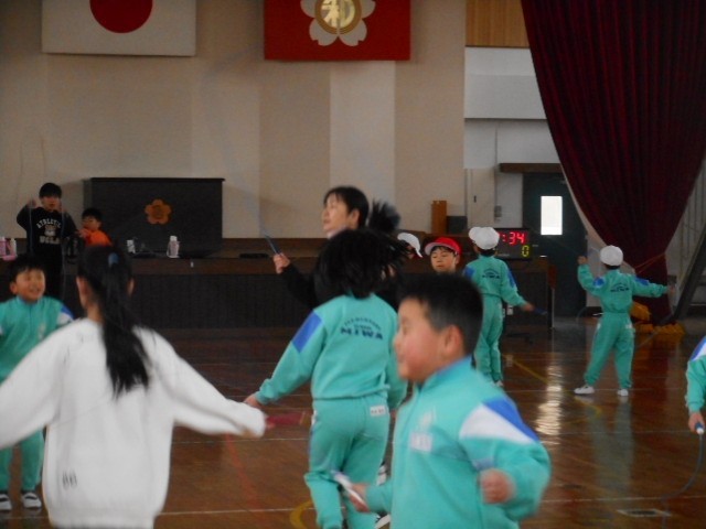 今日は、三和っ子タイム。三和っ子たちは、なわとびで体を鍛えます。三和小のいいところは、先生方も跳びます。子どもたちに負けじと跳びます。1枚目の写真、見えにくいのですが、養護教諭も跳んでます。三和小、三和っ子たちはもちろん、先生方も無理のない範囲でみんなで元気を維持します!