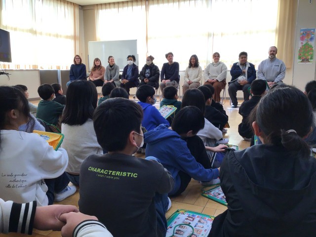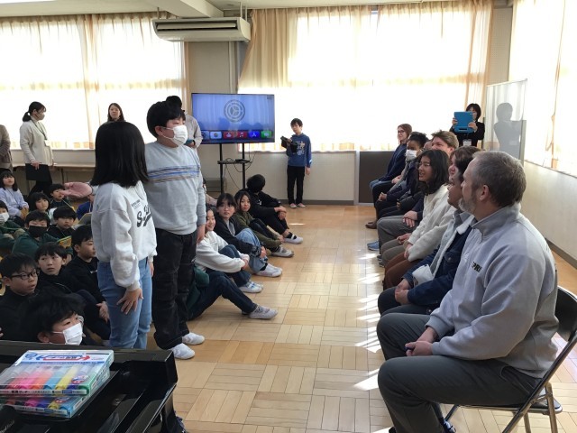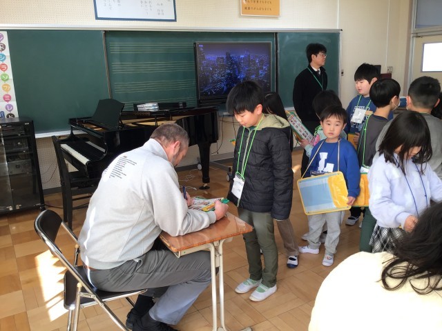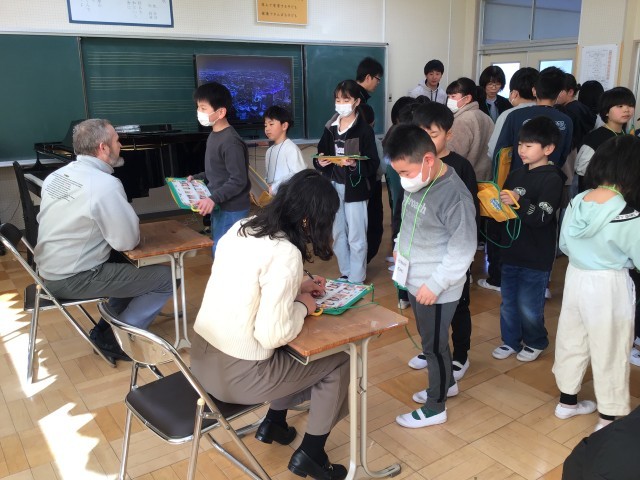 まずは、オープニングセレモニーの様子です。10人のAETに4~6年生が三和小学校の紹介をしました。そして、校歌斉唱。最後は、サインタイムです。三和小学校の紹介、とてもよく頑張りました。AETはにこにこうなずきながら聞いていたので、大成功です。私もbeautiful and kind と紹介してもらい、上機嫌でした。