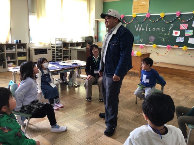 各学級にAETが来てくれるので、質問をしたり一緒に遊んだりしました。AETの出身国の話を聞くことができたので、みんな興味津々です。