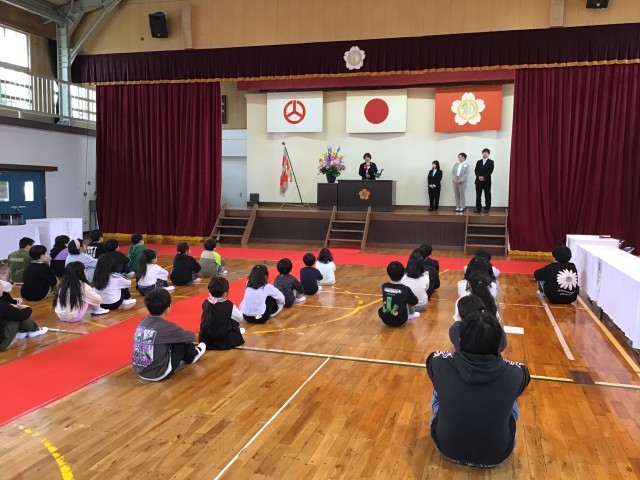 いよいよ令和8年度がスタートしました。昨日3名の先生方が着任され、6年生の代表児童から歓迎の言葉がありました。早く、三和小学校のみんなと仲良くなり、楽しく学校生活を送れるといいです。その後、第1学期の始業式を行いました。今日は、34名の三和っ子全員が揃いました。三和っ子全員の元気な顔が見られて、うれしかったです。