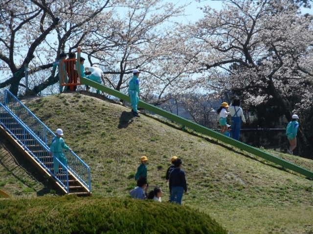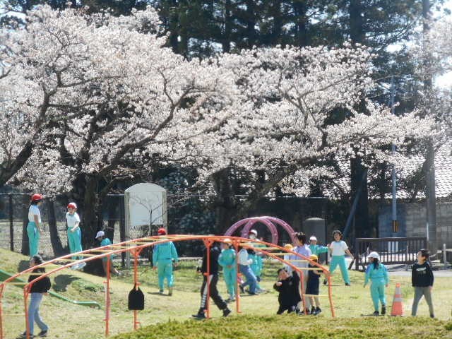 校庭の桜も満開で、三和っ子たちの新しいスタートを見守ってくれています。早速、1年生を校庭に誘ってくれた6年生。郡山市で一番高い築山で遊びました。他の学年の三和っ子たちも集まり、楽しい業間の時間となりました。