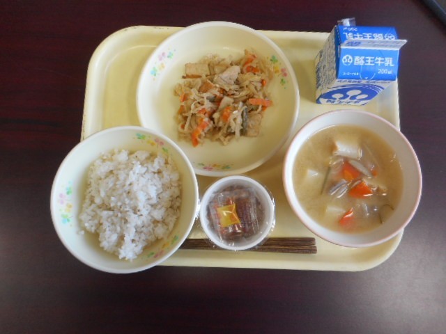 昨日の給食は、麦ごはん、納豆、切干大根の含め煮、生揚げのみそ汁、牛乳です。